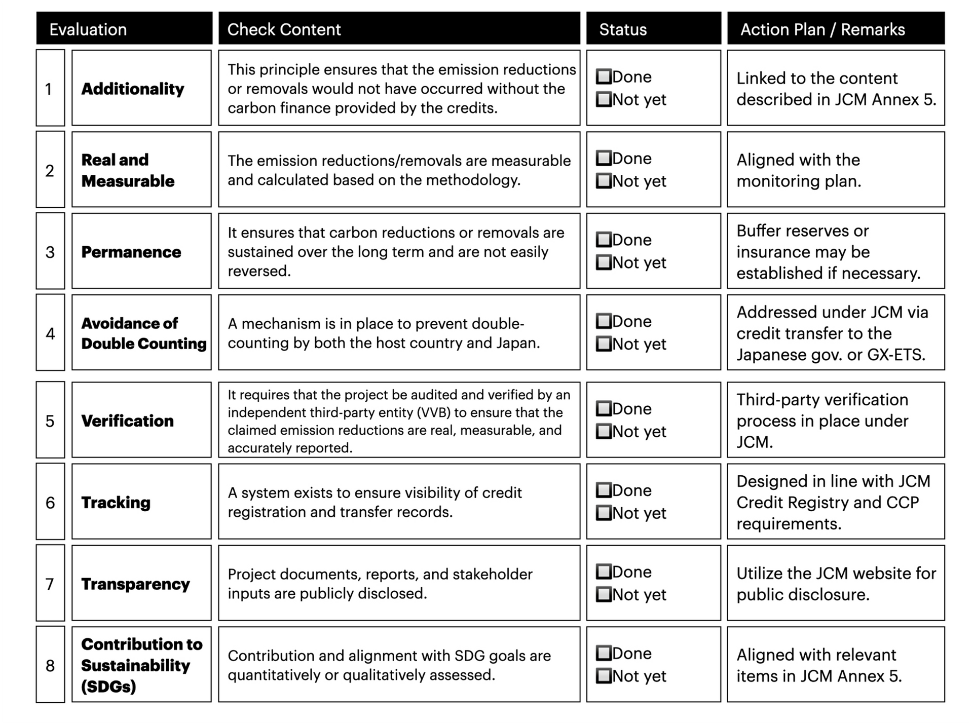 JTCF-backed projects are designed to meet JCM requirements and align with ICVCM’s CCPs (Core Carbon Principles), enabling multi-market eligibility—subject to host LoA/CA, program criteria, and current rules (e.g., GX-ETS).