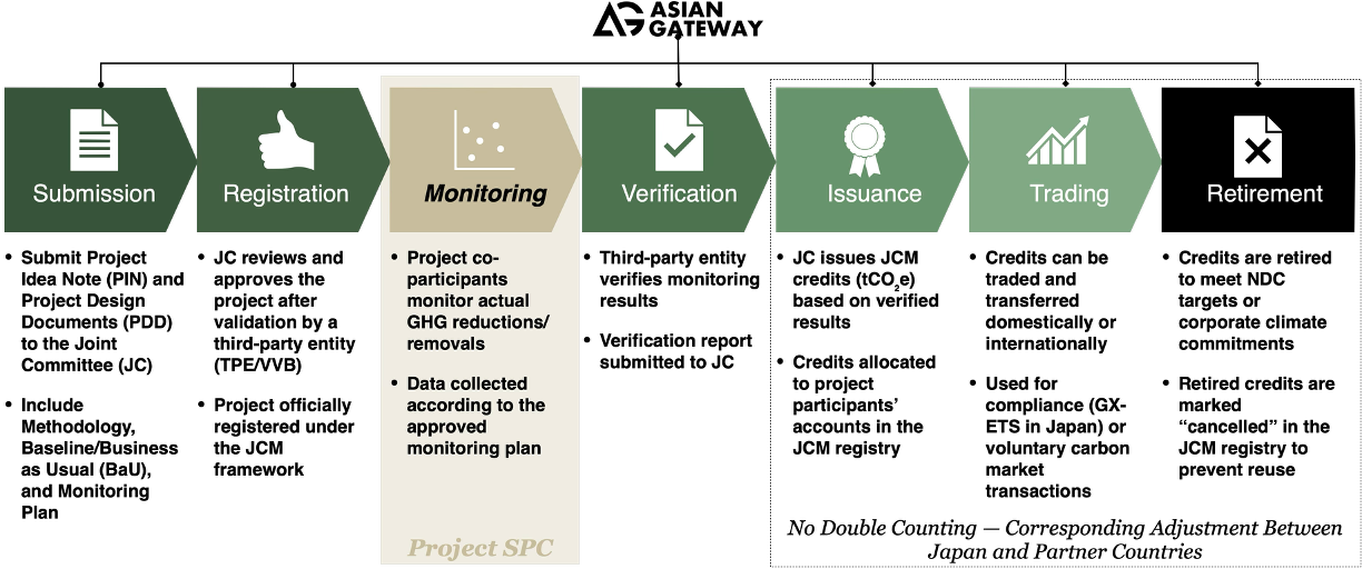 - Permitting & Stakeholder Coordination: Grid connection, environmental impact/HSE, land acquisition, JCM-related procedures (LoA/Corresponding Adjustments, etc.)